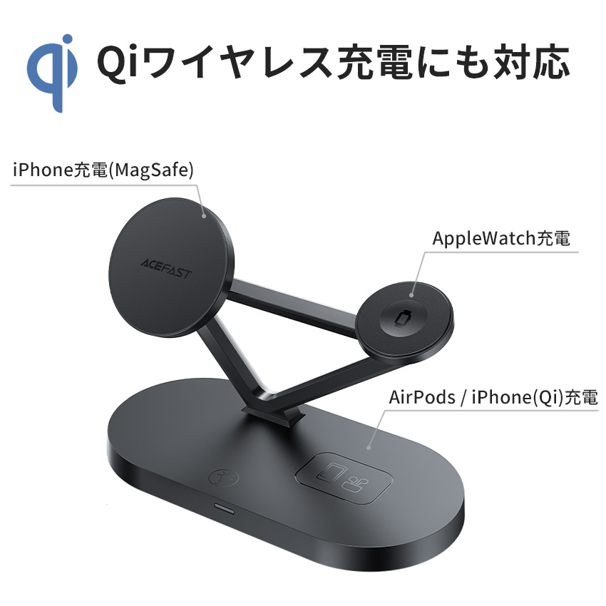 【ACEFAST】 三台同時充電 ワイヤレス充電器 3in1 Qi 15W iPhone17 【急速充電】