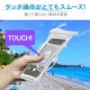 説明おしゃれなデザインのスマホ防水ケース。大きめサイズであらゆるスマートフォンに対応しています。海・プールなどレジャーや旅行に、お風呂やキッチンでの普段使いに、大事なスマホをしっかり守ります。