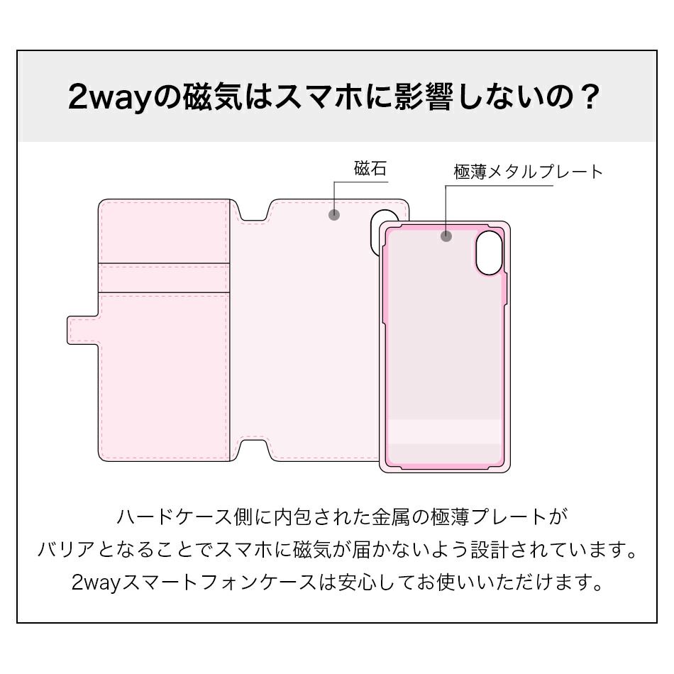 説明 外ではカード収納がほしい、液晶画面が見えないようにしたい、しっかり保護したい、プライベートでは手帳はジャマ、ポケットにサッと入れたい、持ちやすいのがいい・・・。マグネットを内蔵した背面ケースと手帳カバーで、シチュエーションに合わせてスタイルを変えることができる2way仕様のスマートフォンケース。